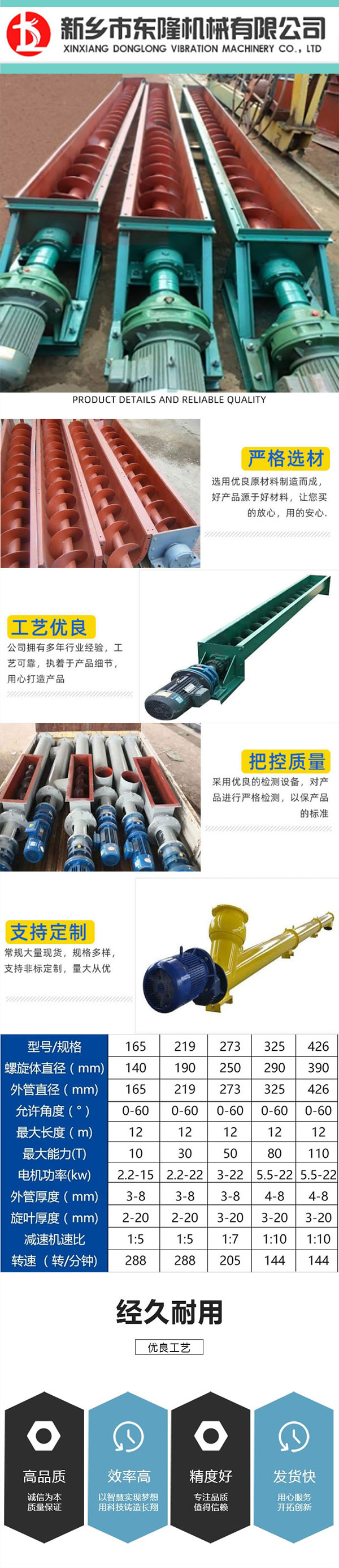 管式螺旋输送机是利用螺旋旋转而推移物料的连续输送设备,管式输送机适用输送面粉、谷类、水泥、化肥、灰渣、沙子、石子、煤粉、小块煤等物料。我公司拥有成熟的生产链,齐全的产品型号,自主研发高品质输送设备,欢迎您来洽谈,合作。